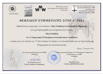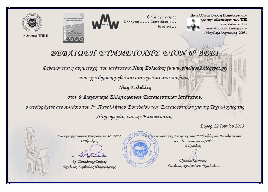 η βεβαίωση συμμετοχής μας σε διαγωνισμό ιστοσελίδας