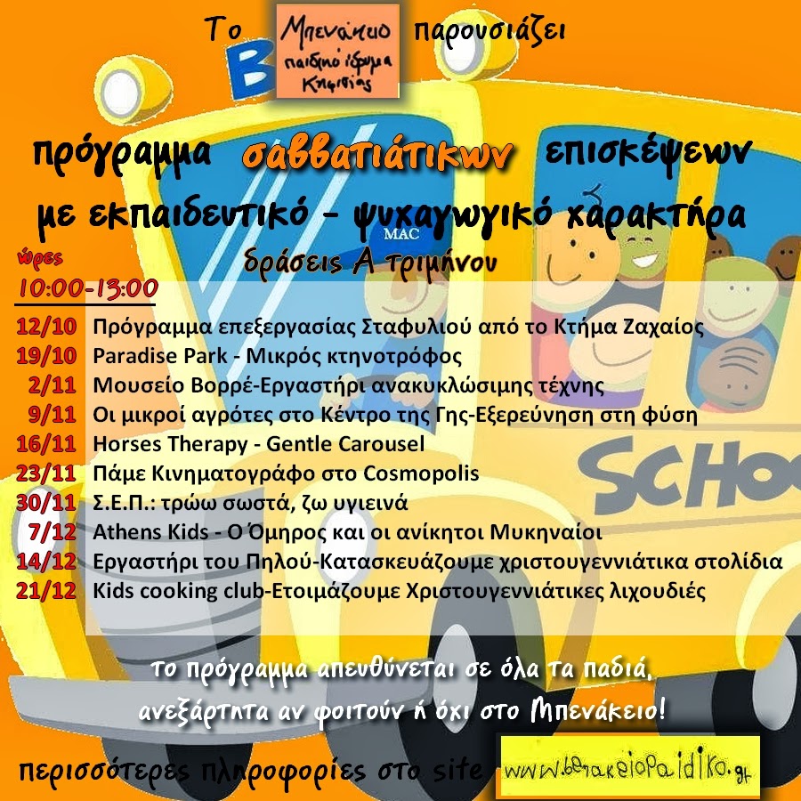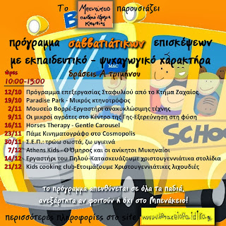 πρόγραμμα σαββατιάτικων επισκέψεων με εκπαιδευτικό και ψυχαγωγικό χαρακτήρα